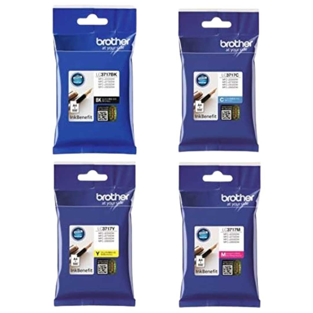 The Brother LC3717 Original Ink Cartridge Full Set is a complete set of high-quality ink cartridges designed for reliable and professional printing. The set includes four cartridges: Black (LC3717BK), Cyan (LC3717C), Magenta (LC3717M), and Yellow (LC3717Y), each delivering a standard yield of around 550 pages at 5% page coverage. Ideal for home offices, small businesses, or personal use, these cartridges ensure consistent performance and vibrant print results.