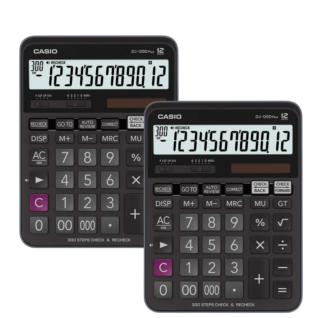 The Casio DJ-120D Plus Desktop Calculator is a practical and efficient tool designed for everyday business, accounting, and office work. It features a large 12-digit display that allows easy reading of long figures, supported by comma markers for better number grouping. The dual power system—solar for energy saving and battery for backup—ensures uninterrupted operation in all lighting conditions. With its 150-step check and correct function, users can review and edit previous calculations with confidence. Dedicated keys for tax calculation, profit margin, and markup make it ideal for commercial and financial applications. The calculator’s well-spaced, durable keys provide comfortable input, while its slightly tilted display offers improved viewing angles during long working hours. Compact, sturdy, and reliable, the Casio DJ-120D Plus delivers accuracy and ease of use for professionals and students alike.