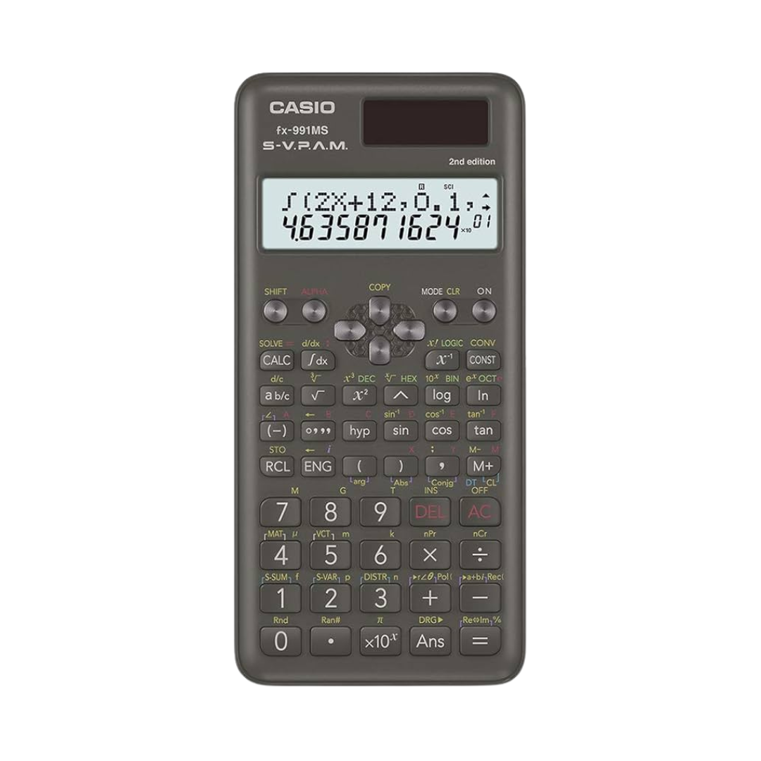 The Casio FX-991MS (2nd Edition) is a powerful and reliable scientific calculator designed for students, engineers, and professionals who require precision and performance. With its 417 built-in functions, this upgraded model offers enhanced usability and faster processing speed, making complex calculations simpler and more efficient. It features a two-line natural textbook display, allowing users to view both the expression and the result simultaneously — just like in a textbook.