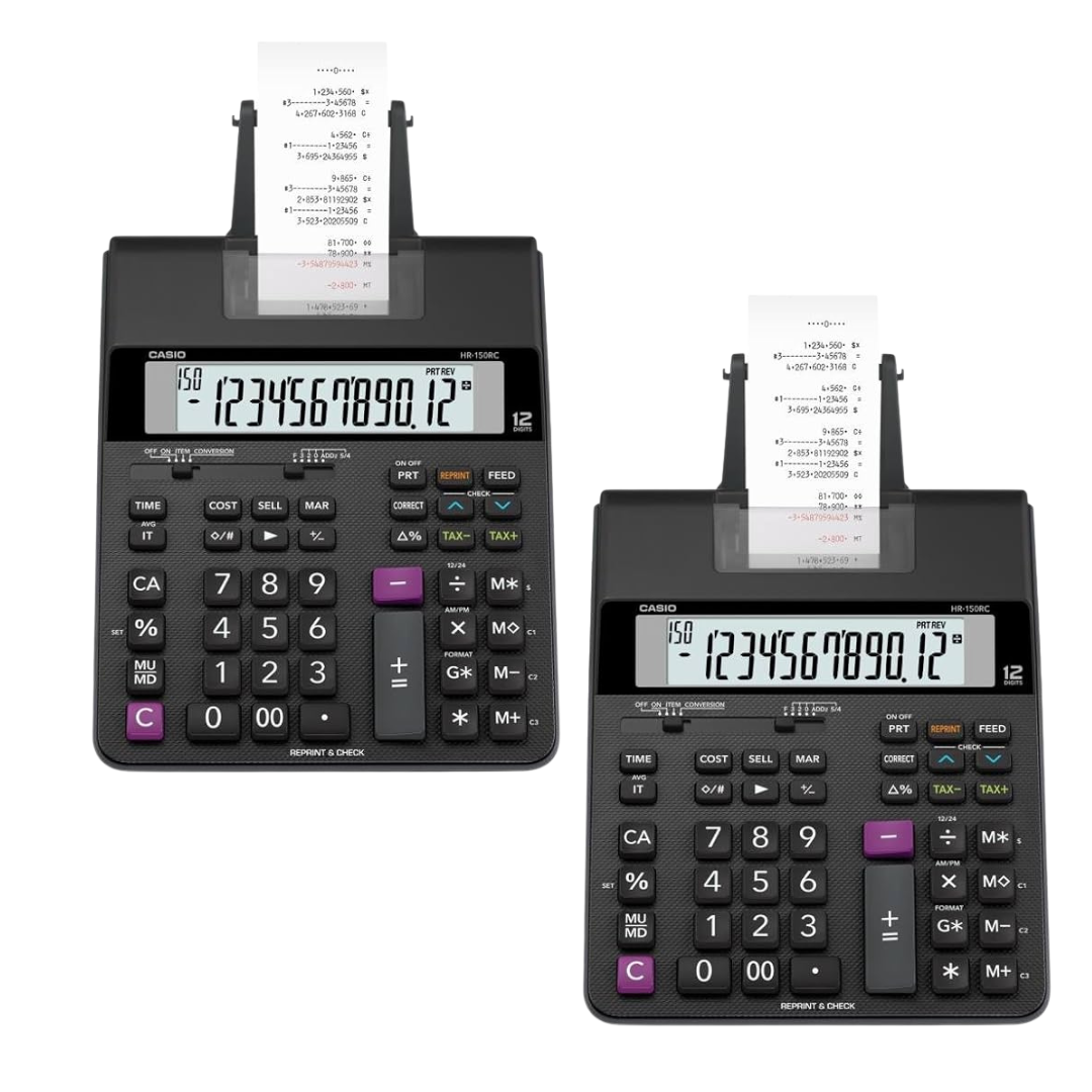 The two-piece design provides simple paper roll replacement and a neat, space-saving layout. The calculator supports dual power operation — using an AC adaptor for continuous use or batteries for portability. Durable and efficient, the HR-150RC delivers precision, performance, and convenience for everyday business tasks.