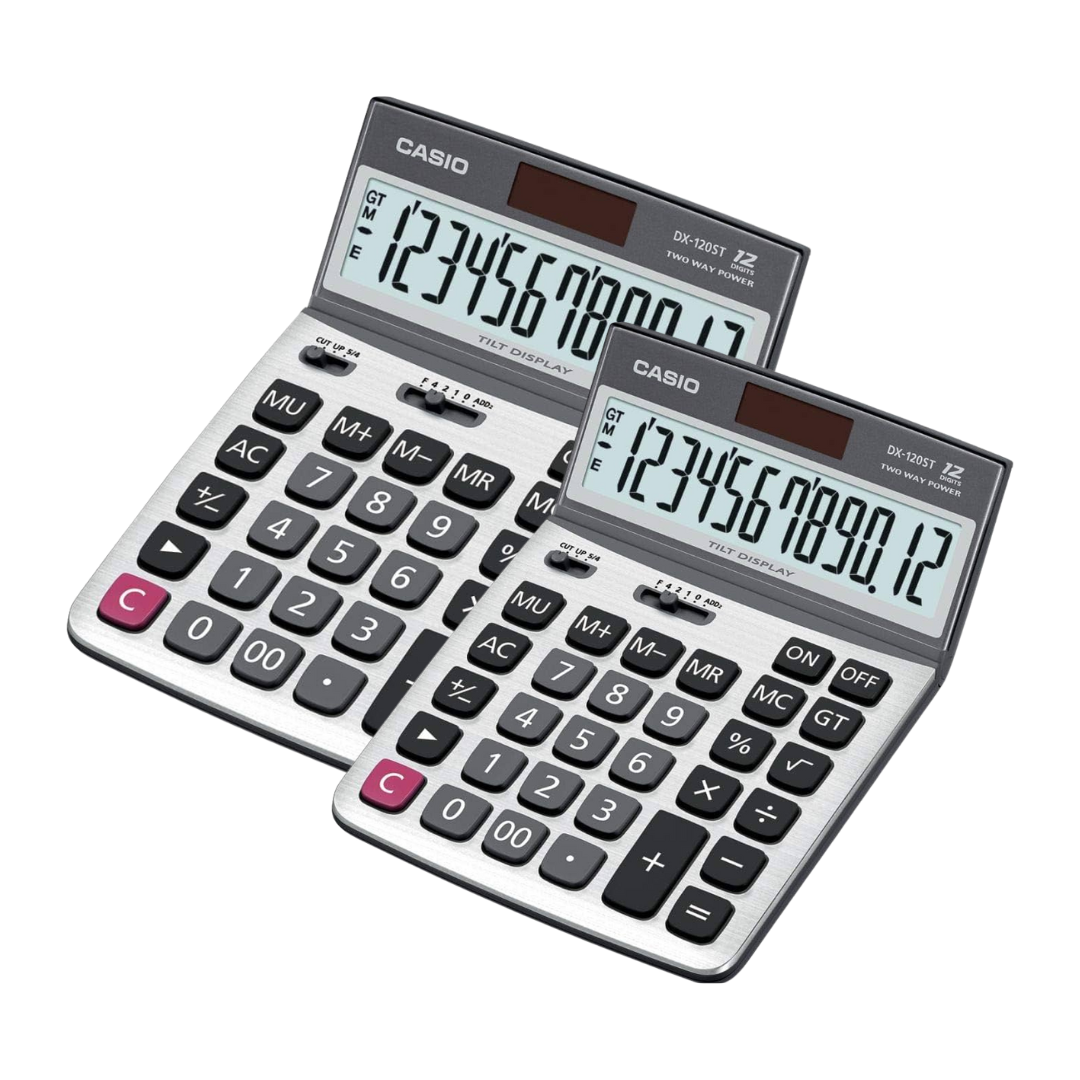 The Casio DX-120ST Two Piece Practical Calculator is a reliable desktop calculator designed for everyday business, office, and educational use. Built with Casio’s renowned precision and durability, this calculator offers a large 12-digit display for clear and easy viewing. Its spacious keyboard with large, well-spaced buttons ensures comfortable and accurate input, minimizing typing errors during long calculations.